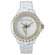Weiße Damen Email Strassuhr