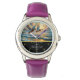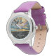 Uhr, Kinderuhr aus Edelstahluhr mit lila Lederarmband