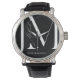 Uhr, Vintage Männeruhr mit schwarzem Lederarmband