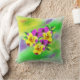 Dieses Johnny Jump-ups Kissen besticht durch Aquarell Johnny Jump-ups auf einem farbenfrohen digitalen Kunsthintergrund.