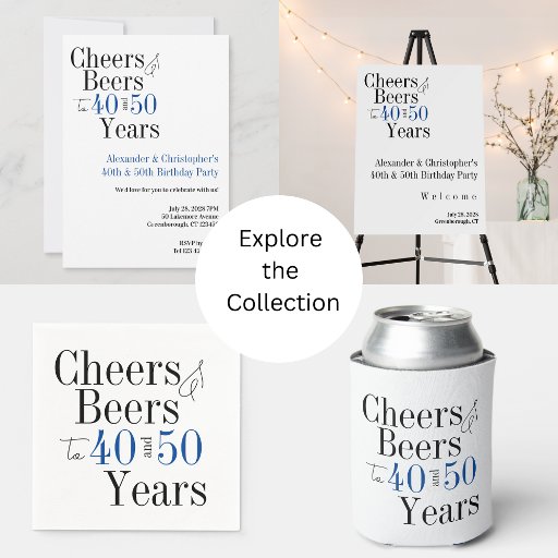 This is a cool and modern, Joint Birthday party Welcome Sign poster design with a cheers and beers theme. It is a simple, minimal design, in classic black and white, with blue colored typography. Perfect for a cool and fun, double celebration birthday party or celebration and ideal for welcoming your guests. This design is fully customizable, simply use the personalize this button to change the age, or the rest of the text, or use the editing tool to change the color or font. If you need help with personalization, matching products, or for a custom design, contact me via zazzle chat or email: ursuladawnmoon@gmail.com