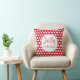 Ein leuchtend rotes und weißes Polka Dotmuster verleiht diesem Jolly Holidays Kissen Retro-Stil. Das Design stammt aus der Originalkunst.