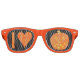 Jolly Kürbislaterne Neuheit Sonnenbrille für Halloween. Von Trick oder Treat bis hin zu einem leckeren Party, sind diese frechen Party-Schattierungen für einen Abend oder als Gastgeschenke in einer schönen Tüte von Leckereien. Alt modische glückliche Jack o' Laterne gemacht in meinen Scheiben von Farbstil. Helle Farbtöne von orangefarbenem Flitz um seine gelben Kerzenleuchten Augen und sein Lächeln gefüllt mit knackigen Zähnen. Dieses bunt geschnitzte Kürbisdesign macht so viel Spaß, dass man ihm vielleicht will, ihn behalten, bis der Herbst vorbei ist.