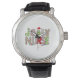 Uhr, Vintage Männeruhr mit schwarzem Lederarmband