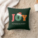 Kundenspezifische, farbenfrohe, festliche, typografische "JOY" Weihnachtsmannmütze, grün, Urlaubskissen. Passen Sie Ihren Namen / Text oder die Unterschrift Ihrer Familie an.