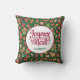 Dieses fabelhafte Weihnachtsvolkskunst 16" x 16" grünes Kissen mit einem Muster von Santas, Lebkuchenmännern, Weihnachtsbäumen, Ornamenten, Engeln und Geschenken, die Fröhliche Weihnachten in Französisch "Joyeux Weihnachten" und hat Ihren Nachnamen würde auf Ihrer Couch, Bett oder Stühle phantastisch aussehen! Es ist so festlich und passt zu jeder Weihnachtsdekoration - es ist rustikal, aber zurückhaltend und modern und doch traditionell! Es wird fantastisch aussehen und die kleine zusätzliche Weihnachts-Touch zu Ihrer Zuhause hinzufügen!