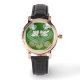 Schöner, Vintager Deko, Frauenuhr mit Blumenmuster aus grünem und weißem Wasser.