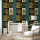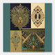 Eine Collage von künstlerischen, Jugendstil-Drucken von Christopher Dresser. Eine Mischung aus Kunst und Kunsthandwerk , Viktorianischen und Jugendstil-Textildrucken. Kühl und elegant. In den Farben Schwarz, Gold und Grün / aquamarin. Dieses Bild ist öffentlich und stammt von Wikimedia-Commons.