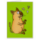Cartoon Katze mit google Augen jonglieren drei Cartoon Mäuse mit zitternden Schwänzen. Originelle Cartoon-Kunst von Taylor Addams.