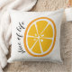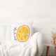 Lustige Orangen und Orangenscheiben mit den Worten "Stück Leben". Passen Sie Ihr eigenes Sprichwort an. Die Rückseite des Kissens ist ein passendes orangefarbenes Gingham-Muster. Zwei Kissen in einem.