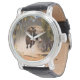 Uhr, Vintage Männeruhr mit schwarzem Lederarmband