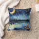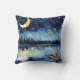 Kleiner Junge fischen in einem Ruderboot unter Sternen und Halbmond in Aquarell.