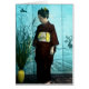 Junges japanisches Mädchen-Vintage Hand färbte Kimono von einem authentischen und antiken Dia der magischen Laterne in unserer privaten Sammlung.