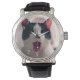 Uhr, Vintage Männeruhr mit schwarzem Lederarmband