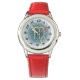 Kinderuhr aus Edelstahl mit rotem Lederarmband