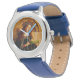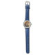 Kinderuhr aus Edelstahl mit blauem Lederarmband