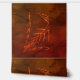 Ein einfaches, zufälliges, unstrukturiertes Fraktal-Bild, das dem versteinerten Skelett eines Raptor-Dinosauriers oder vielleicht dem vogelartigen Archäopteryx ähnelt; überlagert auf einem dunklen Steinhintergrund.
