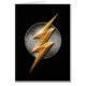 Das ist das goldene Blitzsymbol des Flash über einer silbermetalischen Mesh-Scheibe aus dem Film Justice League.