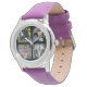 Uhr, Kinderuhr aus Edelstahluhr mit lila Lederarmband