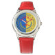 Kinderuhr aus Edelstahl mit rotem Lederarmband