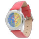 Uhr, Kinderuhr aus Edelstahl mit rosa Lederarmband