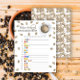 Wasserfarbene Kaffeebohnen und Tasse Kaffee und Bohnen Muster. Kaffee brauende Babydusche. Kaffeemaschine mit Babydusche. Text mit Kaffee-Ring und mit Kaffeebohnen und Tasse Kaffee.