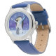 Kinderuhr aus Edelstahl mit blauem Lederarmband