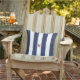 Das perfekte personalisierte Kissen für Ihren Outdoorraum in diesem Sommer.. Marineschrauben mit rotem Monogramm. Personalisieren Sie mit Ihrem eigenen Initial. Matching Zubehör in unserer Minimal Monogram Cabana Stripe Kollektion erhältlich.