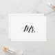 Einfaches und elegantes Schwarz-Weiß-Kalligraphie-Stil "Mr." Hochzeitszeichen. Dieses "Mr." Hochzeitszeichen sieht gut aus, auf einem matten Papier gedruckt, wenn Sie etwas traditionelleres verwenden die Laid, Linen oder Columned, für eine rustikale Atmosphäre verwendet die Artisan Kraft, wenn Sie woll, eine Touch von Glanz hinzuzufügen, verwenden Sie den Luxe. Klicken Sie auf den Button "Anpassen", um zum Editor zu gelangen und eine andere Hintergrundfarbe zu wählen. Das ist ein flaches 5" x 7" Kartenzeichen, das in einem Bilderrahmen sehr elegant aussieht.