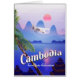 Kambodscha 'Reise ins Abenteuer' Vintages Reiseplakat mit einem leichten Abend, das tief über die Landschaft fliegt.