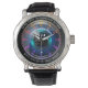 Uhr, Vintage Männeruhr mit schwarzem Lederarmband
