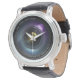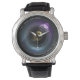 Uhr, Vintage Männeruhr mit schwarzem Lederarmband