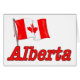 Große rote Briefe zeigen den Provinznamen Alberta, hinter dem eine fliegende kanadische Flagge steht. Dieses Design ist auf einer großen Auswahl an T - Shirt, Geschenken und anderen Bekleidung erhältlich.