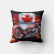 Ein auffallendes Motorrad mit Flammen steht vor dem Hintergrund der kanadischen Flagge, beleuchtet von einem hellen Vollmond und reflektierendem Wasser.