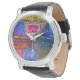 Vintage Männeruhr mit schwarzem Lederarmband