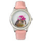 Kinderuhr aus Edelstahl mit rosa Lederarmband