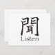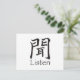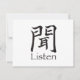 Das japanische Kanji-Symbol für das Wort "Hören" wird in kalligraphischen Pinselstrichen gezeigt und sieht sehr cool auf einem Hemd, einer Tasche, einer Kappe oder einem Knopf aus. Wir haben sogar die englische Übersetzung hinzugefügt, sodass die Leute die Nachricht bekommen. Das Design für das Zeichen basiert auf einem Gateway mit einem Ohr im Inneren. Hübsch cool! Sie können die Hintergrundfarbe ändern und auch Text hinzufügen. Betrachten Sie auch diese dramatischen Umschläge für einen fertigen Look.