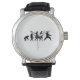Uhr, Vintage Männeruhr mit schwarzem Lederarmband