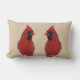 Dieses farbenfrohe Kissen besticht durch zwei brillante rote Nördliche Kardinäle. Dieser Scharlachvogel mit seiner schwarzen Maske ist wirklich der König der Hinterhofvögel! Das Bild wird auf der Rückseite wiederholt.