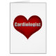 Ein cooler Schriftart mit abgeschrägtem Gesang wird benutzt, um das Wort Kardiologe über ein großes rotes Herz zu buchstabieren.