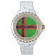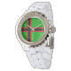 Eine wunderbare Damenuhr mit weißem Armband und grün-weiß-kariertem Ziffernblatt. Trägt sich ganz fabelhaft. Exzellenter Druck, sehr klare Farben. Schönes Design.