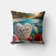 Herzförmiger Stein mit Karen-Erholungen auf Flussfelsen, umgeben von Rose und einem atemberaubenden Sonnenuntergang über dem Fluss.