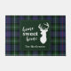 Niedliche Zuhause-süße Zuhause Weihnachtsbadematte können Sie leicht anpassen, indem Sie auf den "Personalize"-Button, Featuring Hirsch Silhouette und Clan MacKenzie tartan in grün, und lila Karo. Ideal, um während der Ferien die Eingangstür zu schließen. Macht ein großartiges Geschenk