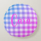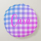 Kariert Gingham Pink Blue Modern Einfache Bezeichn Rundes Kissen