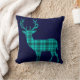 Karierte Rotwild-Silhouette auf aquamariner Marine Kissen