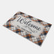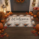 Diese Matte ist der perfekte Herbstausdruck, der Ihre gestalterische Dekoration in der Herbstveranda Krawatte verleiht und Ihren Gästen eine gemütliche und dennoch elegante Note verleiht. Mit einem karierten Hintergrund in Orange, Creme und Schwarz, der den wunderschönen Schriftart des Willkommensgruß ausgleicht und blühe, müssen Sie nur noch Ihren Familiennamen oder Sondertext hinzufügen, um diese Matte einzigartig zu machen.