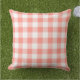 Das Kissendesign zeichnet sich durch ein lässiges Gingham kariert / Karo Muster aus, das sich perfekt für die Sommerzeit eignet! Beachten Sie, dass Sie die korallenorange/rosa Hintergrundfarbe anpassen können, um sie mit der Außendekoration abzustimmen.
