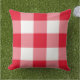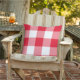 Das Kissendesign zeichnet sich durch ein lässiges Gingham kariert / Karo Muster aus, das sich perfekt für die Sommerzeit eignet! Beachten Sie, dass Sie die rote Hintergrundfarbe anpassen können, um sie mit der Außendekoration abzustimmen.