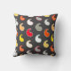 Moderne, minimalistische Paisley-Muster werfen Kissen in Rot, Senfgold, Aqua, Grau und Weiß, mit kontrastierenden Konturen, auf einem dunkelgrauen/grauen Hintergrund aus Holzkohle