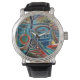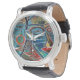 Uhr, Vintage Männeruhr mit schwarzem Lederarmband